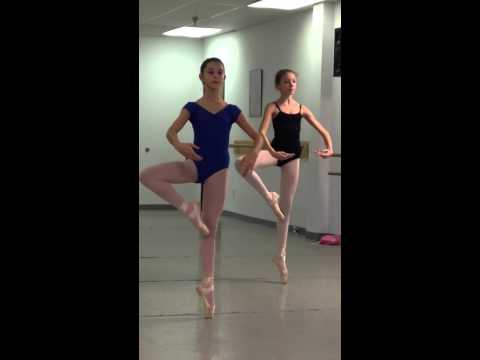 Katharine's been on pointe for only two to three months, but she's keeping up very well with the more experienced girls, as you can see in this video.
